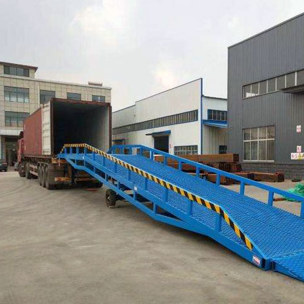 移動裝卸貨平臺配置的剎車墊可有效防止貨車裝卸時登車橋移位。